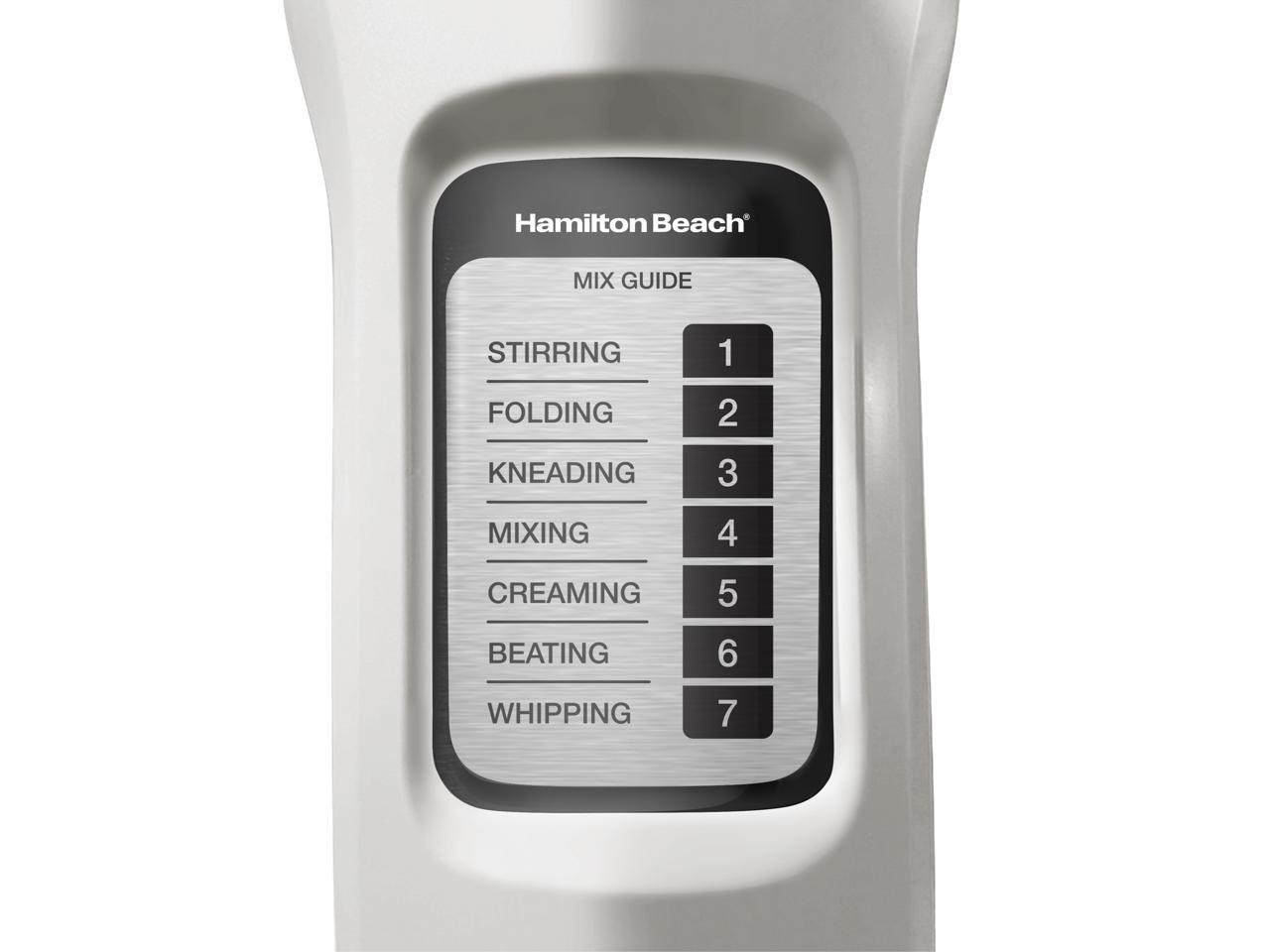 Versatile with 7 speeds, a slow first speed and a mixing guide