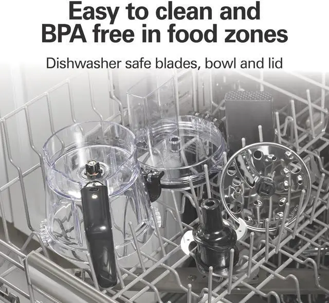 Removable parts including the blades, bowl and lid are dishwasher safe, and all food zones are BPA free for your peace of mind.
