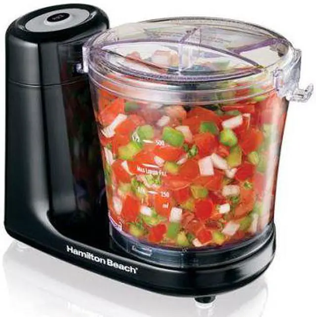 Compact, affordable electrics chop and mince in a flash.Hamilton Beach Food Choppers speed food prep by handling the chopping, mincing and mixing for you. Don 't let the compact, lightweight design fool you. These popular food choppers are powerful enough to take on onions, herbs, nuts, garlic and more. You can even use these food choppers to puree sauces and baby food.Hamilton Beach Food Choppers ' stainless steel chopping blades provide powerful, reliable results. Plus, they 're easy to use and clean -- the bowl, lid and chopping blade are dishwasher safe, and the hideaway cord cuts countertop clutter.Touchpad controlOne-touch pulse with easy-to-clean touchpadRemovable parts are dishwasher safeOil dispenserStainless steel blade