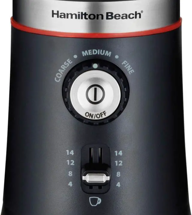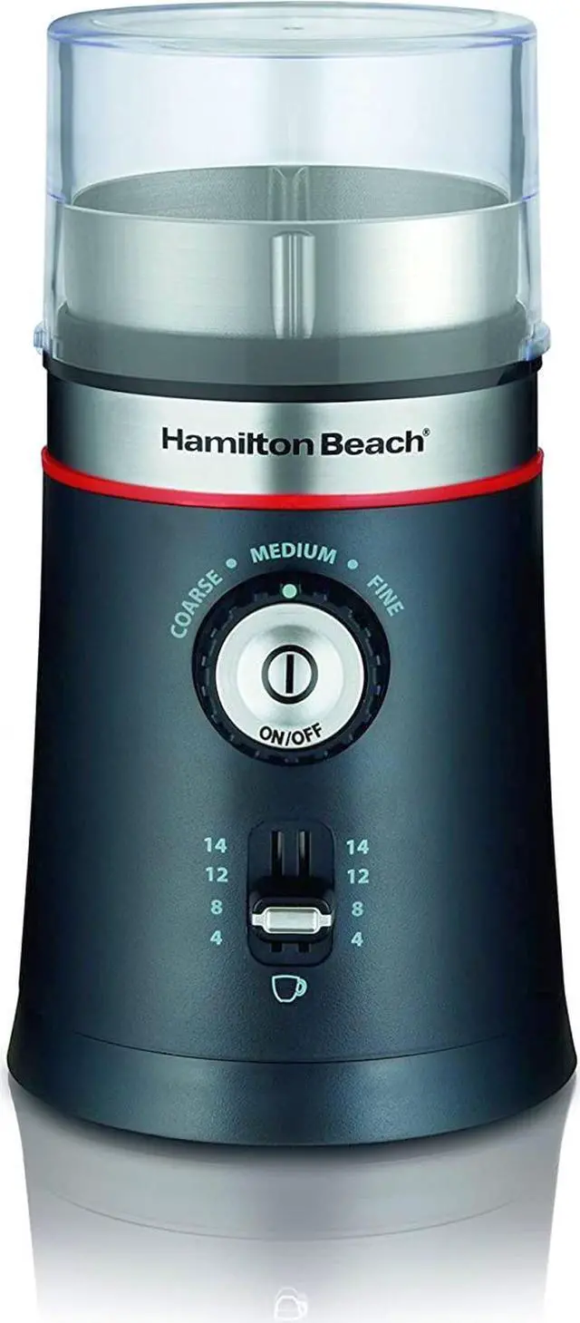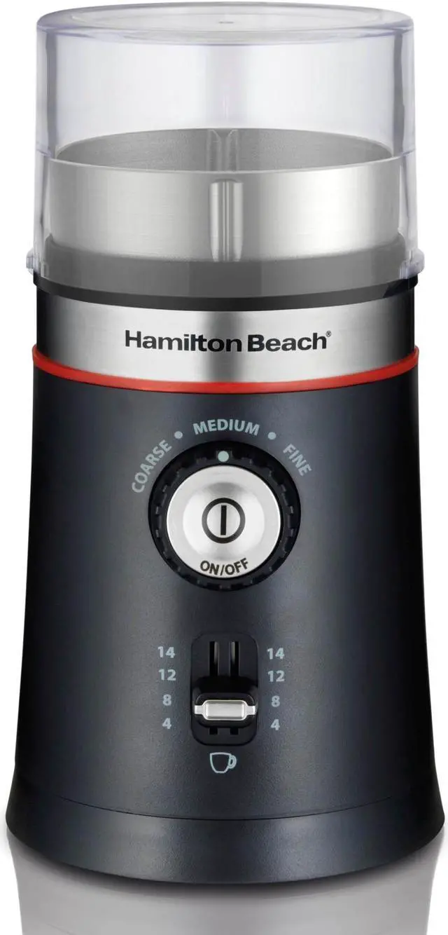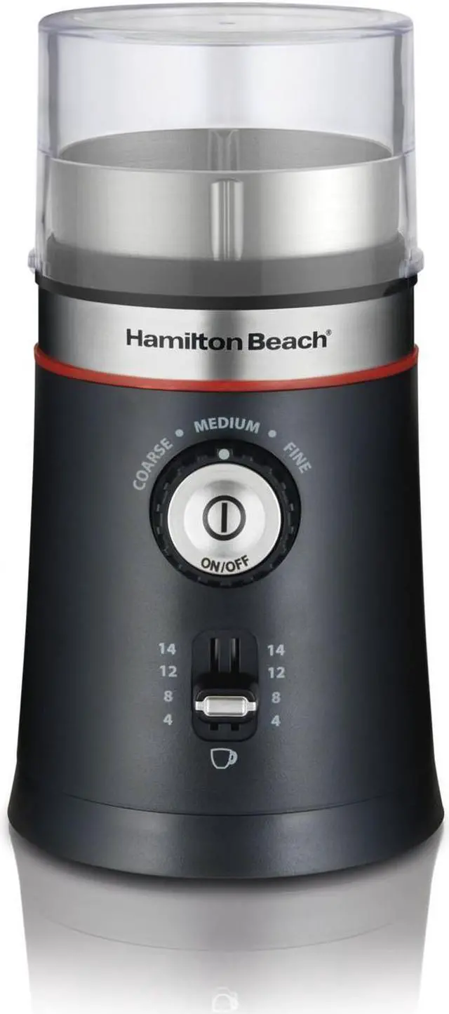 Hamilton Beach 80393 Black Custom Grind Coffee Grinder, Removable Stainless Steel Chamber