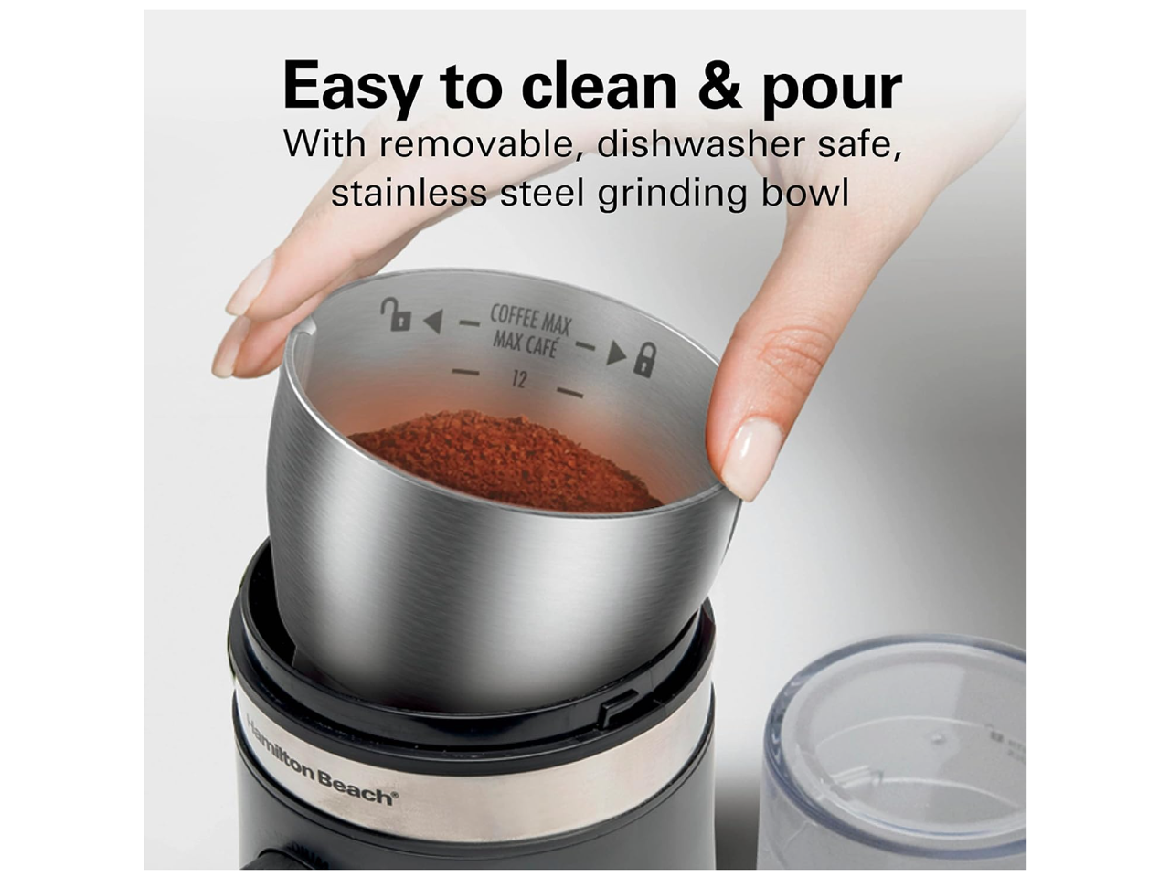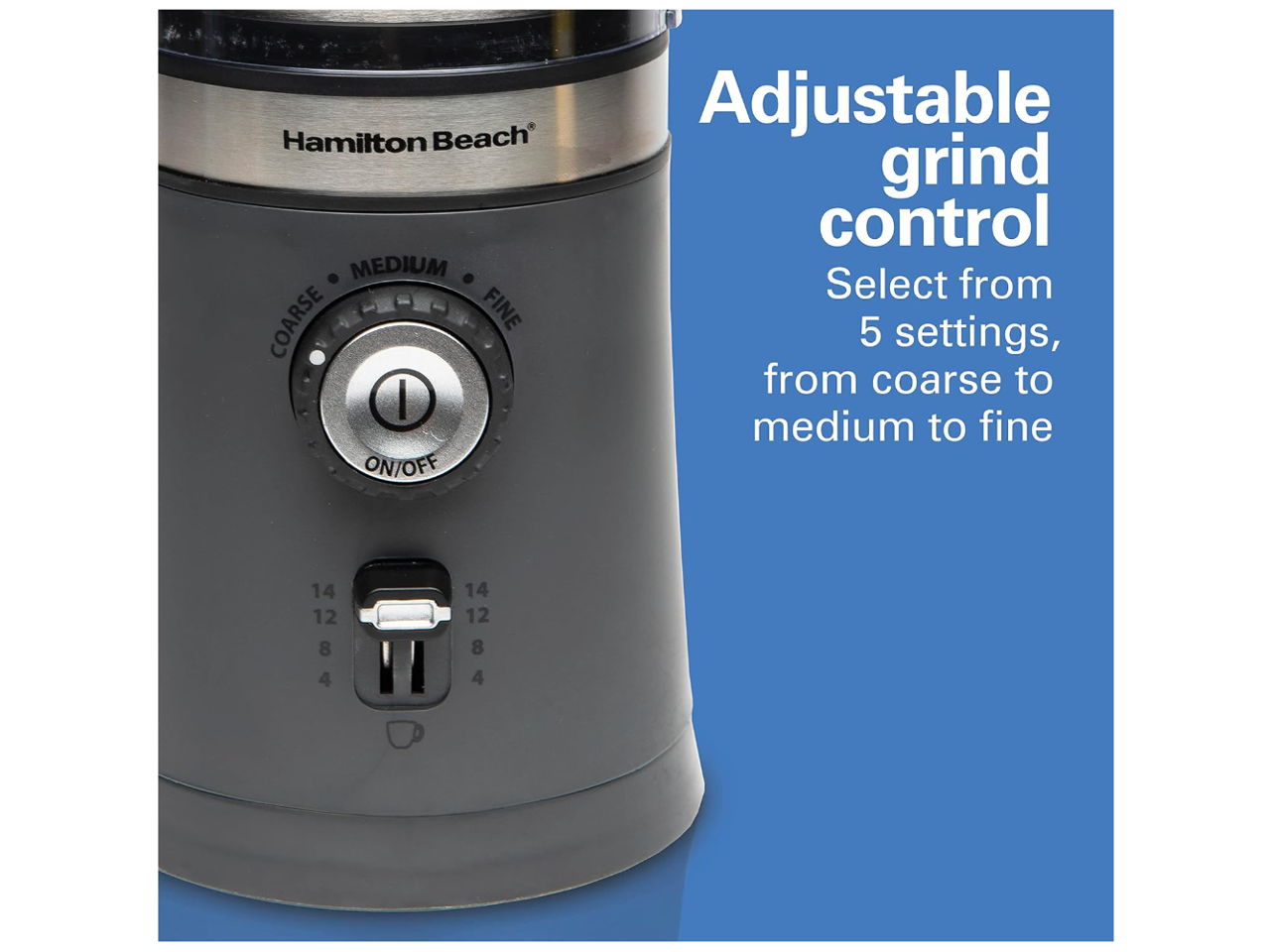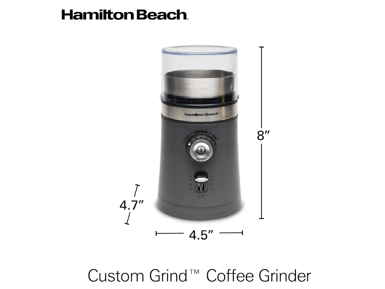 Hamilton Beach 80396RC Gray Custom Grind Coffee Grinder, Removable Stainless Steel Chamber, Gray