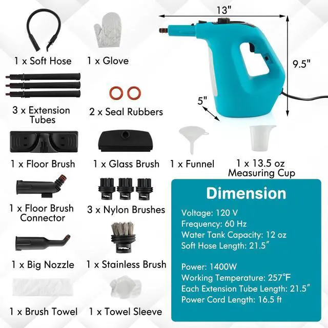 This steam mop cleaner uses powerful high-pressure steam to clean and disinfect. It is suitable for sealed surfaces, and fabrics. Equipped with different types of brush heads and nozzles, the household steamer can penetrate deep into crevices and cracks to eliminate stains and dust. It should be noted that the initial sprayed steam may contain a lot of water droplets, and the steam will return to normal after 3-5 seconds. If you find that the water is running out during cleaning, you are able to add water without cutting off the power supply. To help clean the whole house more quickly and easily, our portable steam cleaner is here waiting for your call!