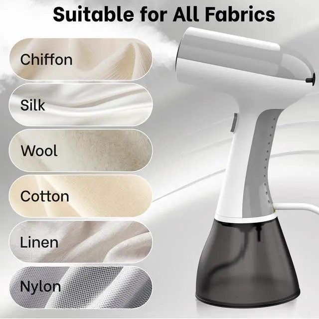 Powerful Steam PenetrationThe garment steamer penetration is suitable for a wide range of fabrics, including chiffon, silk, wool, cotton, linen, nylon, and more.