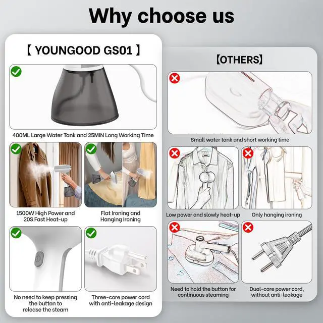 Learn more about the Garment Steamers YG-GS01-Gray White, YOUNGOOD, Compact