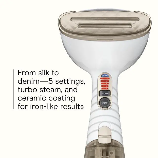 Water reservoir for up to 20 minutes of continuous steam.