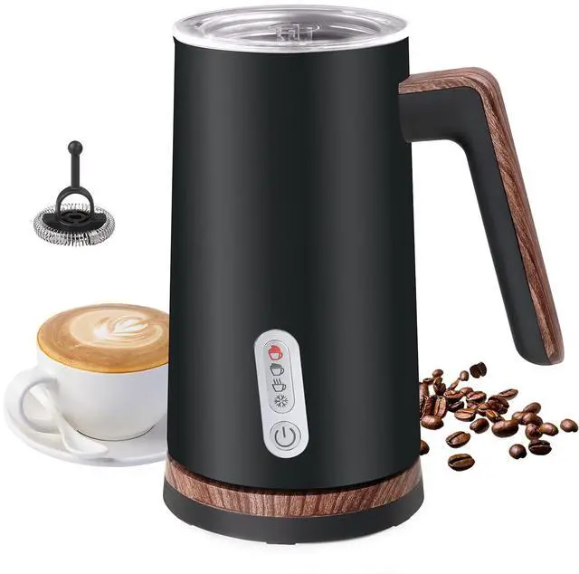 Electric Milk Frother and Steamer, 4-in-1 Milk Steamer with Wood Elements Design, Automatic Hot & Cold Foam Maker for Latte, Cappuccinos, Macchiato, Milk Warmer, Black (black)