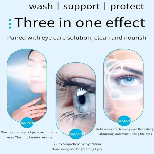 3 IN 1 WASH AND CAREDeep eyes hydration and nourishment. Wash and care three-in-one refreshing eyes with eye care solution cleansing and nourishing 360 ° full hydration cool misting moisturizing eye cleaning beauty residues