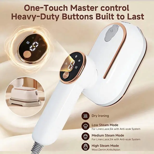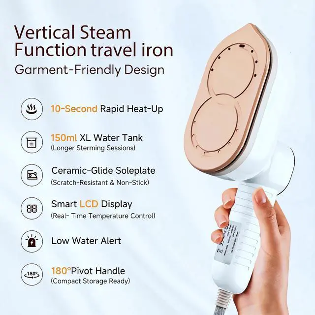 The HRDZML travel steam iron weighs only 0.7kg (1.54lb), featuring a foldable handle for effortless storage. Ideal for: home use, travel, business trips, student dorms, holidays, and last-minute meeting prep