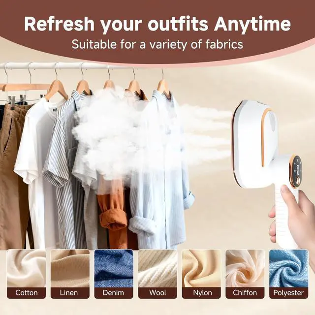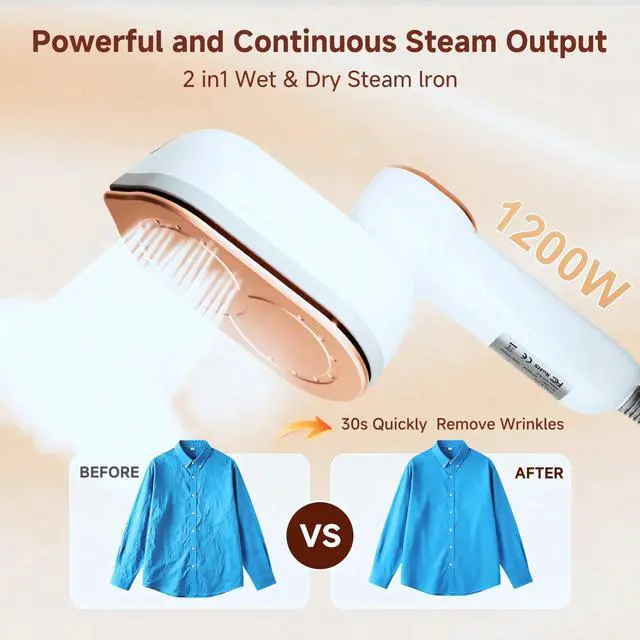 This dual-function garment steamer delivers 1200W high power, heating to operating temperature in 10 seconds.