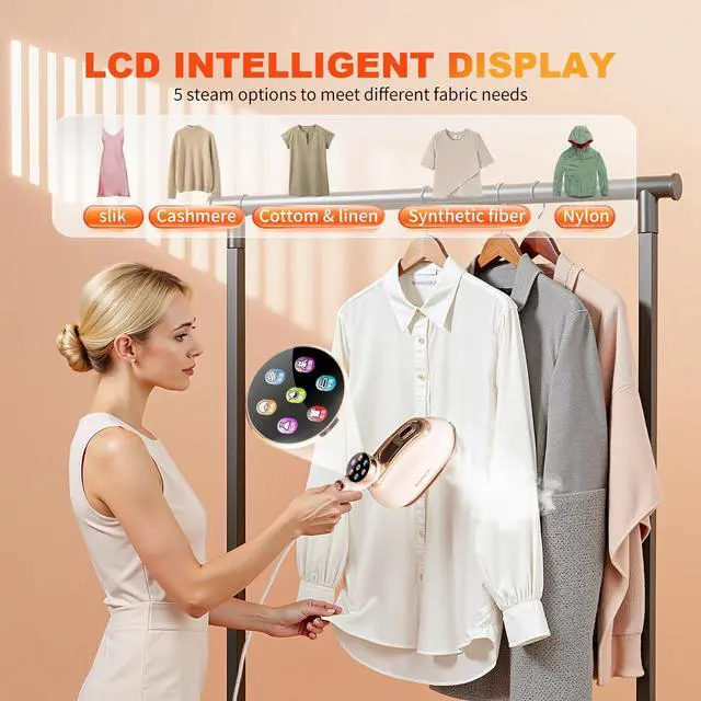 LCD disply shows clearly 2 In 1 Wet & Dry Ironing, also the 5 different steam iron models.