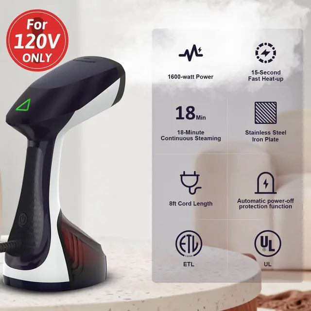 1500W Power & 15s Quick Heat-Up 1500W heats up in 15 seconds for fast wrinkle removal. The 300mL / 10oz tank delivers up to 18 minutes of continuous steaming for shirts, dresses, suits, and more.