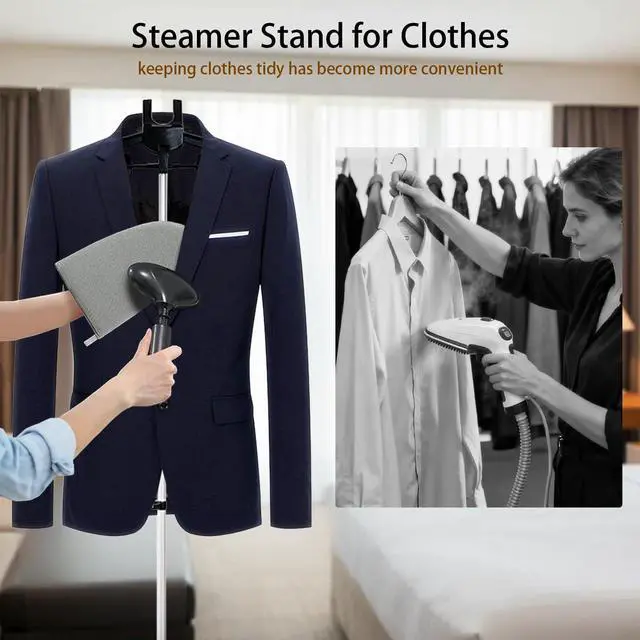 Convenient storage and versatile useSuitable for all garments an adjustable, stand-mounted garment steamer that can be placed in display windows, counters, and shelving areas. The garment display stand is ideal for showcasing T-shirts, dresses, shirts, tops, and trousers.