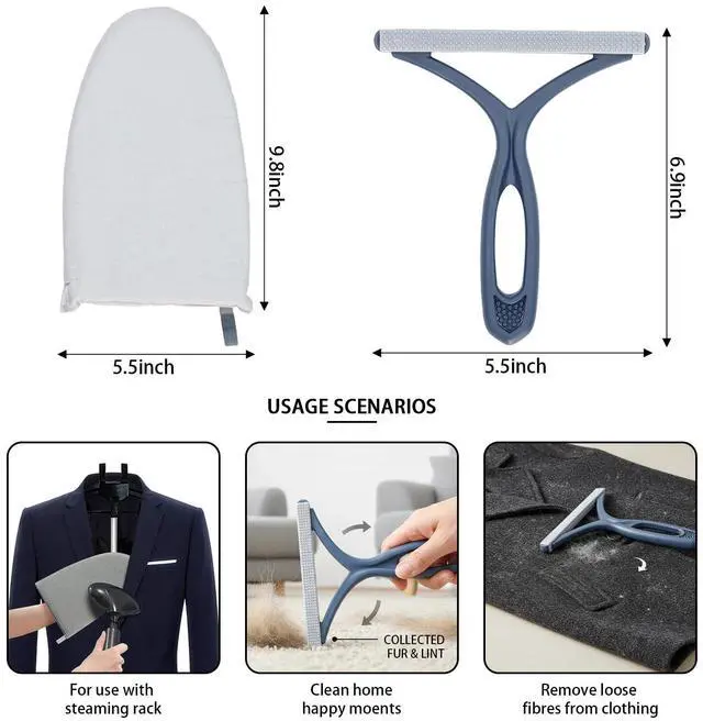 Steam Iron Stand: Includes ironing gloves, garment rack,and lint remover, making it ideal for use with handheld steam irons. This enhances the efficiency of the ironing process, effortlessly handling both everyday garments and delicate fabrics.