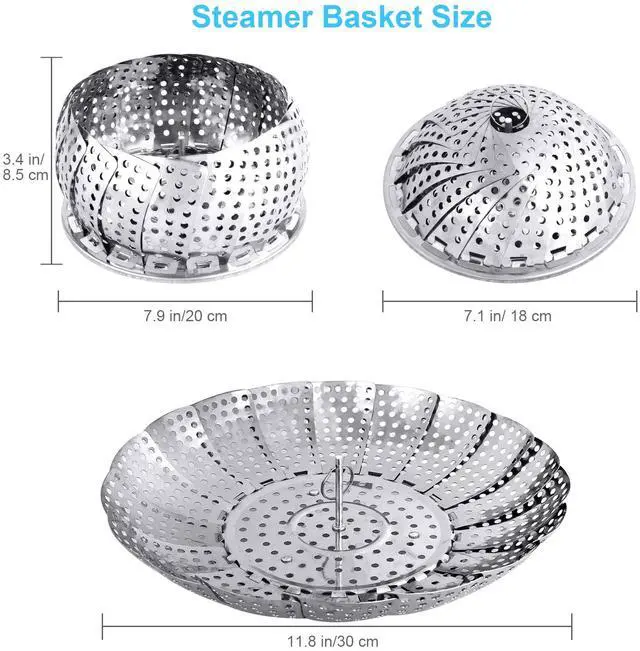 Veggie Vegetable Steamer Basket Size: Collapsed diameter is 7.1 inches/18 cm, expandable to 11.8 inches/30 cm, H: 3.4 inches/8.5 cm