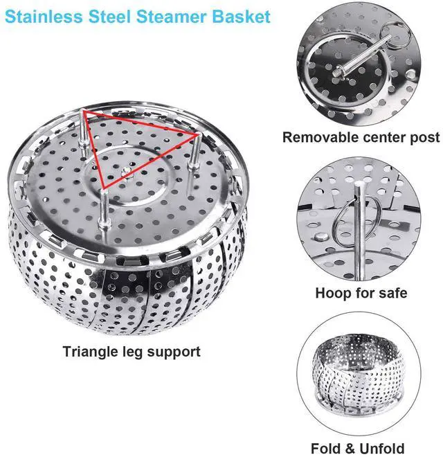Material: The foldable steamer basket is made of food grade stainless steel