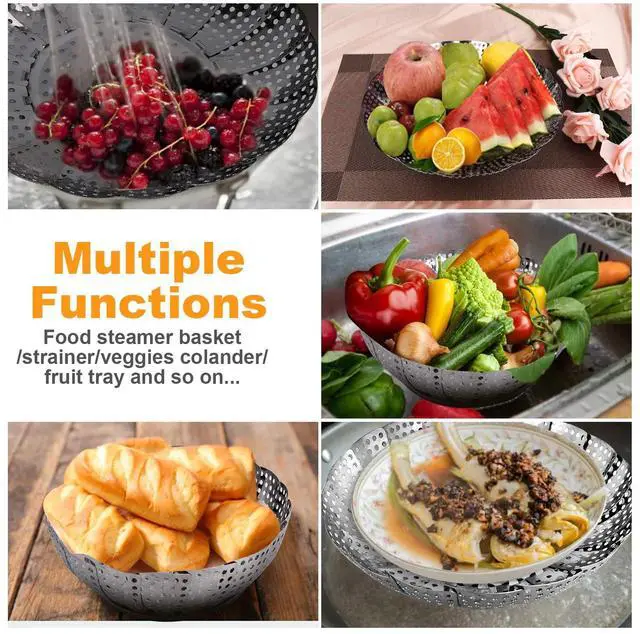 Veggie steamer basket can be used as a water filter, a fruit dish, rack steamers, kitchen strainer, colander etc.