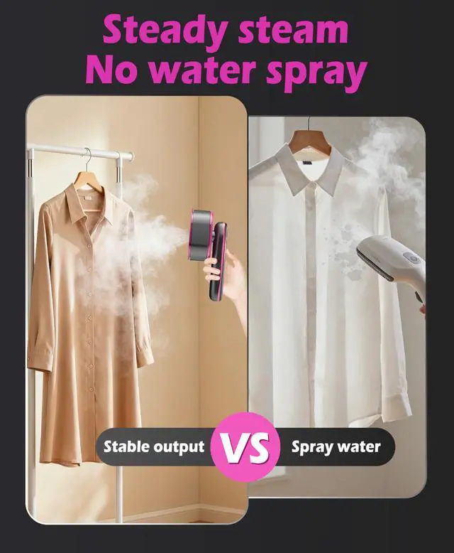 Ideal travel companion: This portable handheld garment steamer features a lightweight design (dimensions: 8.7 '' × 3.1 ''× 3.7 ''s, weight: 1.74 lbs), compact in size and easily operated with one hand. It is the perfect choice for travel and business trips.Travel essentials.