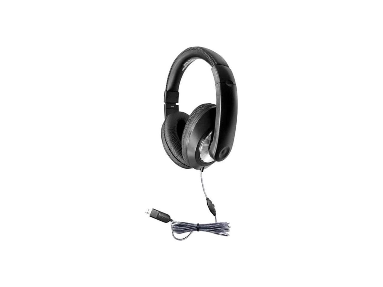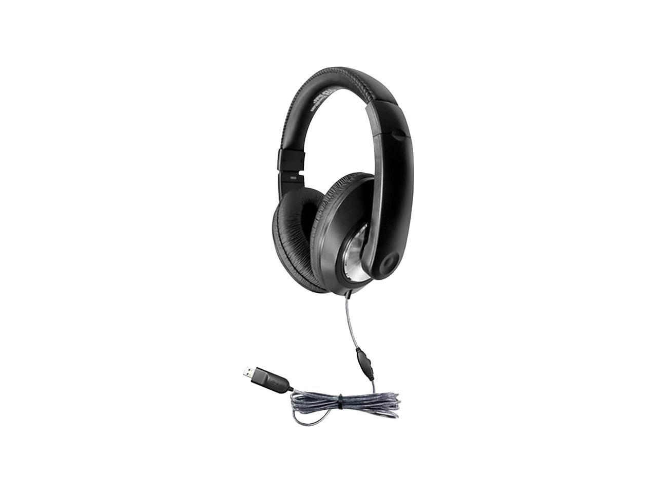 HamiltonBuhl ST1BKU Smart-Trek Deluxe Stereo Headphones with In-Line Volume Control and USB Plug - Black
