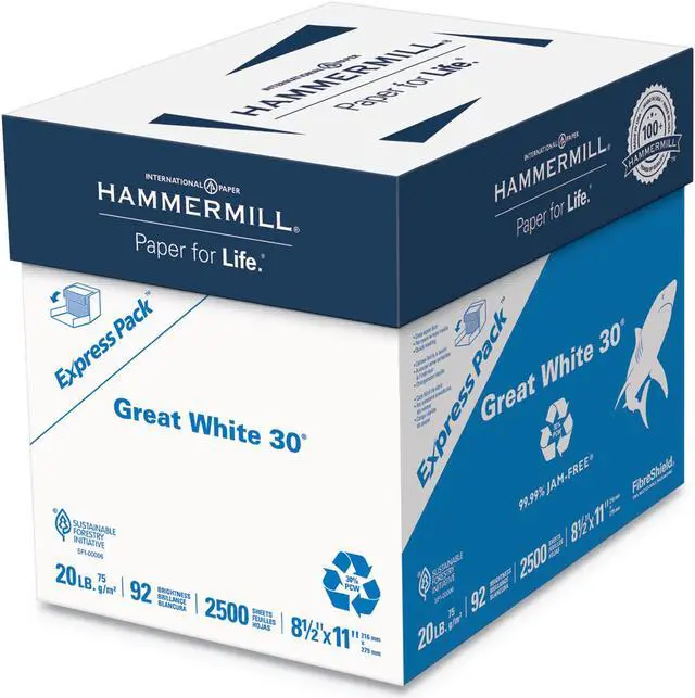 Focus on eco-friendly initiatives in your office with this Hammermill Great White 30 percent recycled 8.5 x 11-inch copy paper.