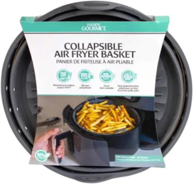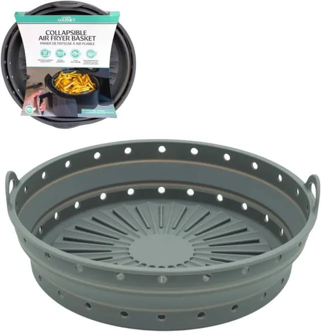 This space-saving solution designed to elevate your cooking experience. With specially engineered steam vents, this basket ensures your food stays deliciously crisp without any hint of sogginess. Say goodbye to messy cleanup with its splatter-preventing feature, making post-cooking maintenance a breeze. Its compact design folds flat to less than 1-inch thick, optimizing storage space when not in use. Plus, it's dishwasher safe, offering ultimate convenience. Heat resistant up to 450°F, it's compatible with most 3-8 quart air fryers, making it a versatile addition to your kitchen arsenal.
