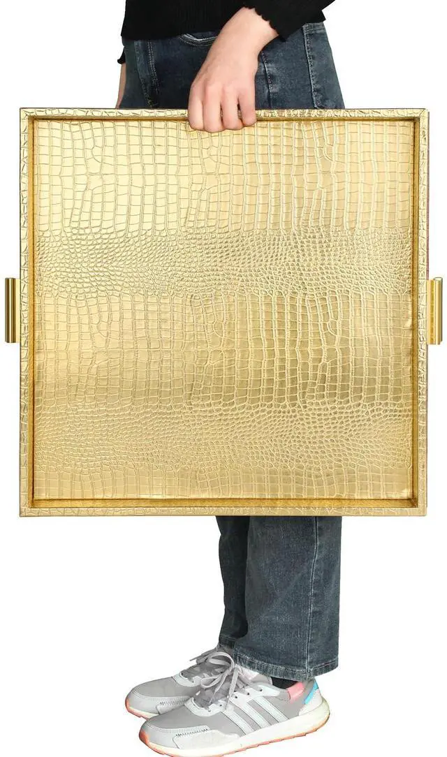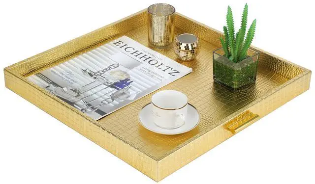 faux leather serving tray for your home Ottoman Table Tray Extra Large Square Ottoman Table Tray 20" - Serving Tray for Farmhouse Decorative Oversized Coffee Table Trays Living Room Kitchen Counter Breakfast