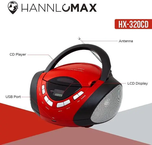 Portable CD/MP3 Boombox, AM/FM Radio, USB Port for MP3 Playback, Aux-in, LCD Display, AC/DC Dual Power Source