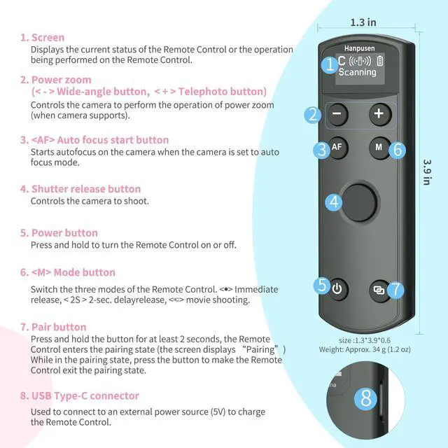- No Need to Replace Battery: The upgraded USB-C interface allows for direct charging of the remote control, eliminating the need to worry about running out of battery and replacing the battery. A single charge can last for 10 hours, meeting your daily needs. Pressing the shutdown button can save power. This interface can also be used for firmware upgrades to prevent future camera upgrades from causing incompatibility.