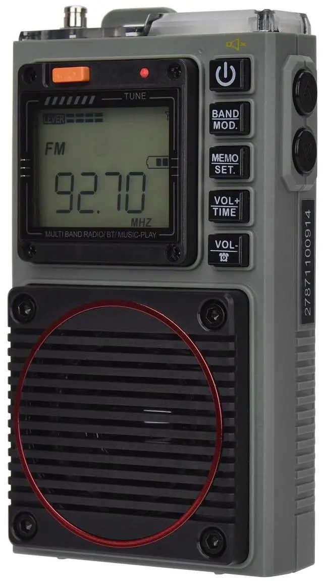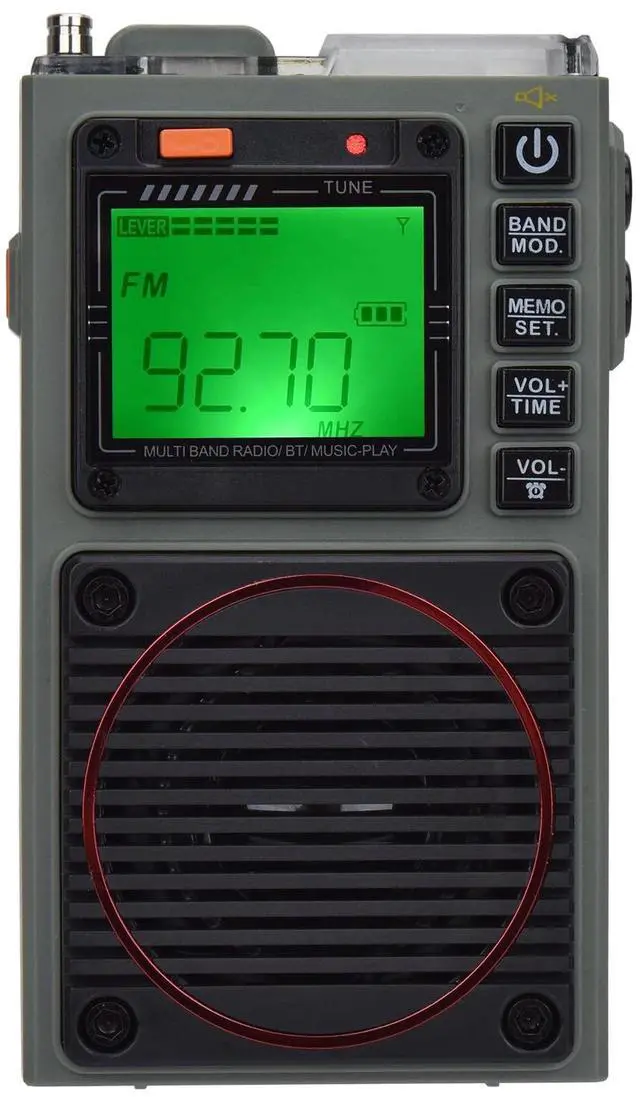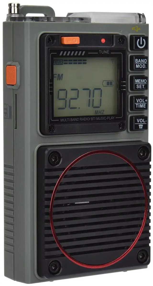 - It can receive FM, medium wave, short wave, VHF (VHF-FM&VHF-WFM), North America national weather band multi-band broadcast and can support Bluetooth, TF card multimedia music playback with high fidelity sound quality.