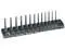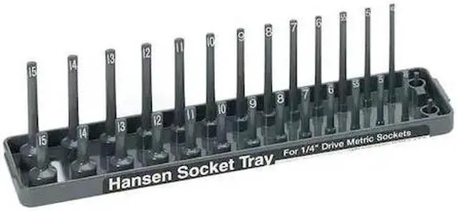 Gray, Socket Tray, Plastic, 2 3/16 in Overall Width, 9 1/8 in Overall Depth, 2 1/2 in Overall Height, For Socket Size/Type 1/4 in, Includes End Tangs End Tangs Included, Number of Handles 0, Number of Posts/Slots 28, Number of Rows 2, Number of Trays 1. This item has been restricted from sale in the following state (s): []