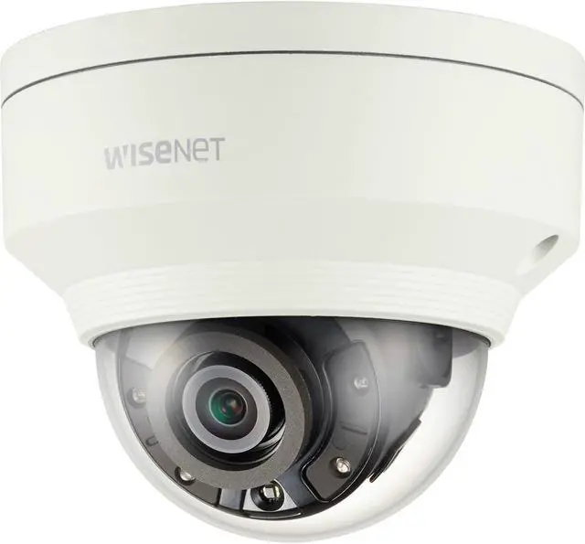 WiseNet X powered by WiseNet 5 network IR outdoor vandal dome camera, 5MP @30fps WDR off/on, 3.7 mm fixed focal lens ( 97.5 ), H. 265/H. 264/MJPEG, WiseStream II compression technology, 120dB WDR, USB port for easy installation, advanced video analytics and sound classification, High powered IR LEDs range of 98', True D/N, dual SD card, hallway view, HLC, defog detection with simple focus, DIS, 12VDC/24VAC/PoE, IP67, IK10, Nema 4X