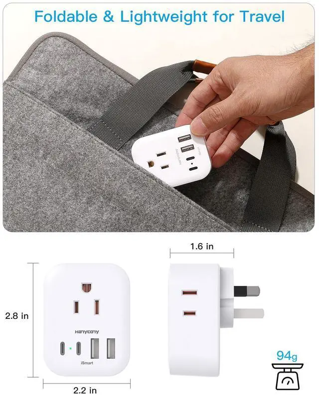 - Measuring just 2.8× 2.2 × 1.7 inches, this adapter is easily fit in the corner of your suitcase, compact and lightweight design just taking up very little valuable space, is perfect for travel.
