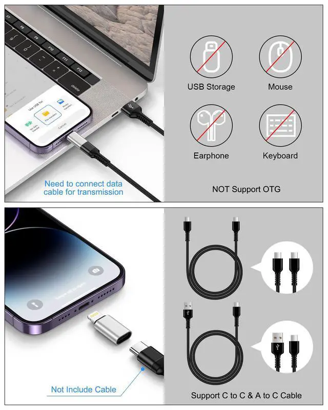 USB-C Female to Lightning Male Adapter Charging & Sync for iPhone/iPad Only, Not for USB-C Devices