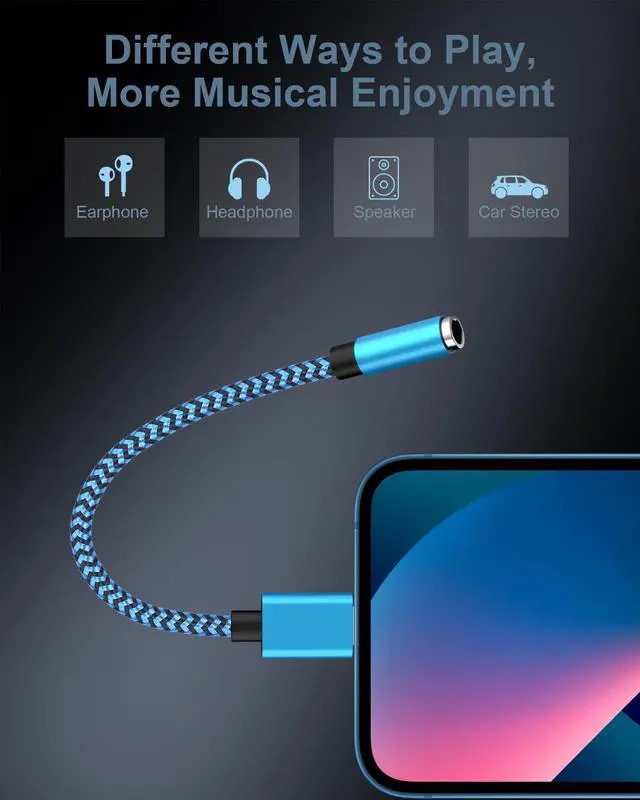 ![Alt view image 4 of 7 - 2-Pack Lightning to 3.5mm Aux Adapter, iPhone Headphone Adapter for Aux Cord [Apple MFI Certified] iPhone 3.5mm Jack Audio Adapter Dongle for iPhone 14 13 12 11 Pro Max Plus Mini XR XS 8 iPad iPod](https://c1.neweggimages.com/productimage/nb640/C68FD2604100RO3NXB5.jpg)