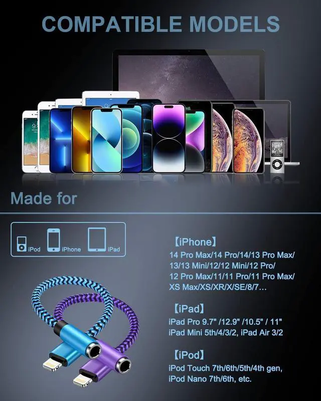 Lightning audio adapter is designed for iPhone/iPad/iPod, and can be used to connect the 3.5mm Aux cord to Listen to Music with a Headphone/Earphone/Speaker/Car stereo.
