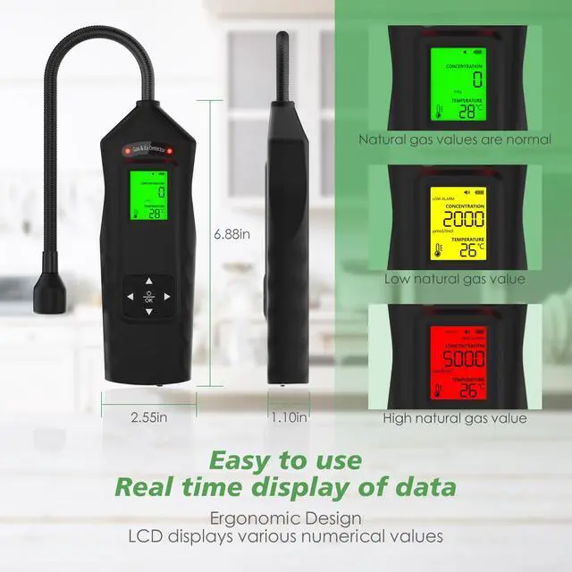 High-precision sensor: Our gas leak detector features an original imported sensor, providing accurate measurement, small error, and a large range. It ensures fast response speed and a long service life.