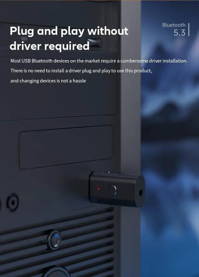 RX mode supports the simultaneous use of two devices, such as car stereo and home stereo, while TX mode supports the simultaneous operation of one device, such as a TV or PC.This 3.5mm car Bluetooth USB adapter is compatible with devices with 3.5mm and USB A interfaces.Does not require the installation of drivers for any compatible devices.