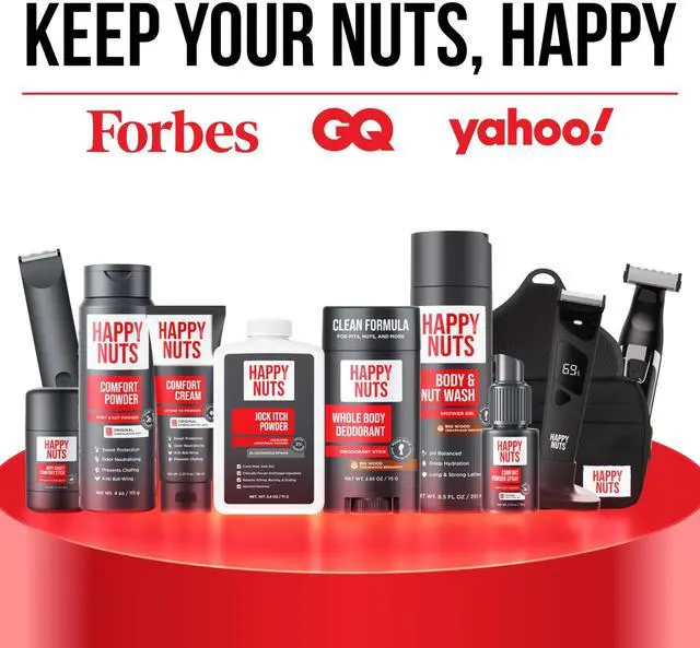 ![]() Jock Itch Powder | ![]() Whole Body Deodorant | ![]() Nuts About You Bundle | ![]() Comfort Cream | ![]() Comfort Powder | ![]() Body & Nut Wash | ![]() Comfort Powder Spray |