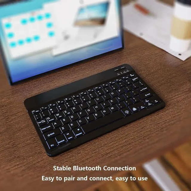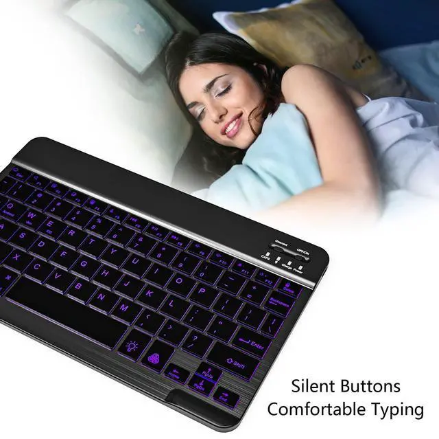 This Bluetooth keyboard comes with 7-color LED backlight mode, 1 breathing light backlight mode and 3 brightness levels.