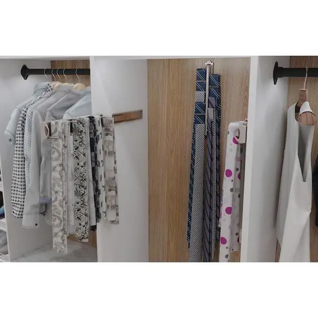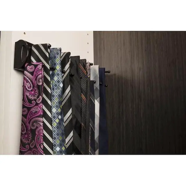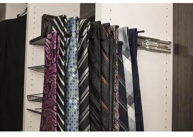 Add luxury to your closet with a 14" sliding tie rack on push-to-open slides. Eighteen hooks can hold multiple ties or other hanging items. Sliding rack is on 100 lb push-to-open ball bearing slides and can quickly be mounted either left-hand or right-hand with the included 32 mm Quick-Brac mounting bracket. With the Quick-Brac you don't have to worry about uninstalling and reinstalling the slides, and it ensures both the front and back mounting hole aligns perfectly in a 32 mm hole system. This is the quickest and easiest belt rack to install universally.