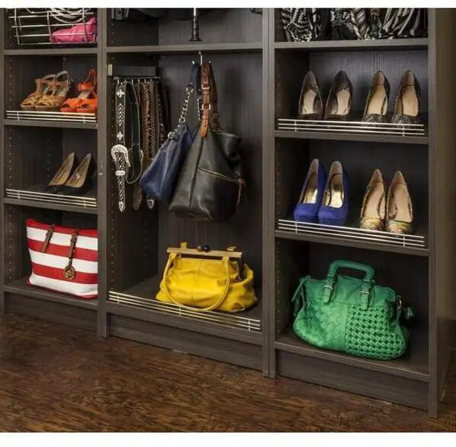 Keep shoes from sliding off shelving with this functional 17" wide Satin Nickel Wire Shoe Fencing. Attaches to shelf with press-in pegs that fit 5 mm (3/16") drilled holes. Pegs are spaced in 32 mm increments. Heavy-duty steel wire.