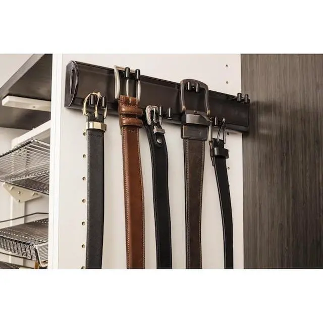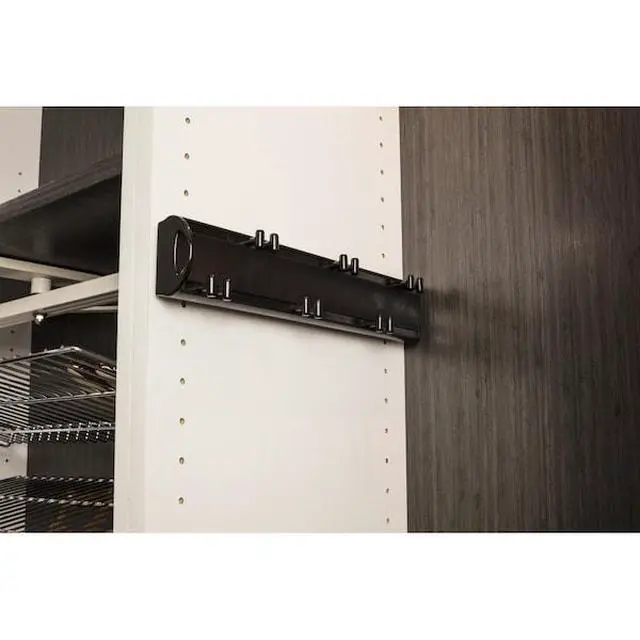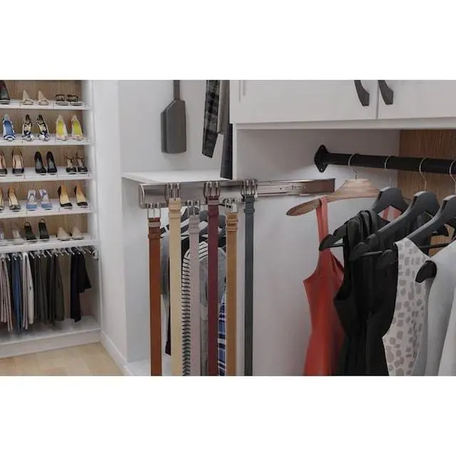 Add luxury to your closet with a 14" sliding belt rack on push-to-open slides. Six double hooks can hold multiple belts or other hanging items. Sliding rack is on 100 lb push-to-open ball bearing slides and can quickly be mounted either left-hand or right-hand with the included 32 mm Quick-Brac mounting bracket. With the Quick-Brac you don't have to worry about uninstalling and reinstalling the slides, and it ensures both the front and back mounting hole aligns perfectly in a 32 mm hole system. This is the quickest and easiest belt rack to install universally.