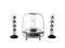 Stepping up its ability to deliver exceptional audio in a beautiful package the SoundSticks Wireless features a six-inch (160-millimeter) subwoofer eight full-range drivers 40 watts of amplification touch controls for volume and muting and a 1/8-inch ( 3.5 -millimeter) audio connection for compatibility to various devices and it also has the added benefit of integrated Bluetooth technology. So whether you're working away at your desk or comfortably lounging on the sofa across the room you can still experience the same breathtaking sound from music movies games and podcasts from any Bluetooth-enabled device be it your phone tablet MP3 player or computer. The SoundSticks Wireless is truly performance at its finest.