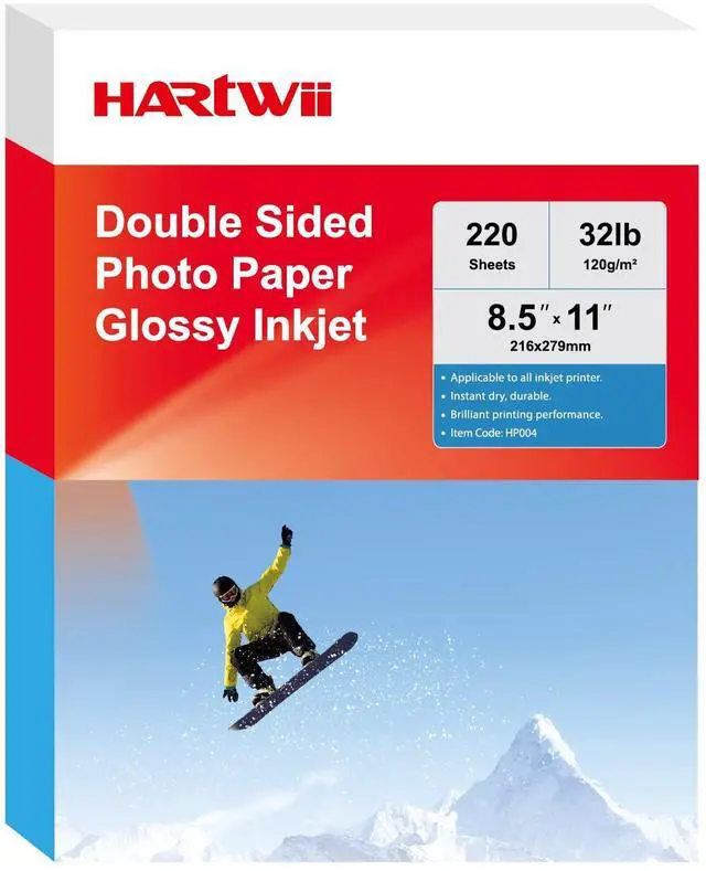 HARTWII Double Sided Photo Paper Glossy Inkjet 8.5x11 32lb 120gsm A4 Letter Size for All Dye Ink Printers