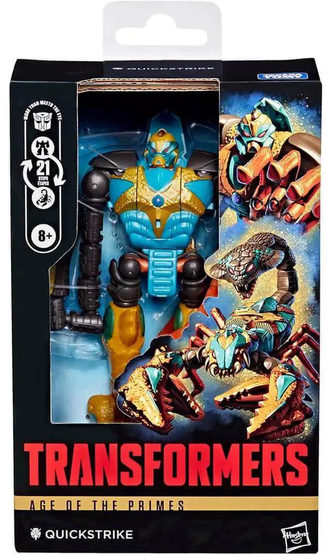 Bring classic Transformers action to your collection with the Age of the Primes Quickstrike figure. Inspired by the Transformers universe, this detailed 5.5 -inch (14 cm) Deluxe Class collectible features authentic deco and impressive articulation for dynamic poses and action-packed play.