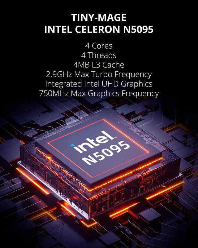 CPU: Intel Celeron N5095, 4 Cores & 4 Threads