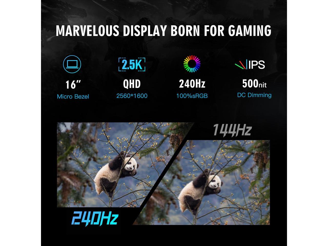 [16'' QHD+ Marvelous Screen Born for Gaming: 2.5K resolution and 240Hz refresh rate, making every second and every frame in the gaming world breathtaking.