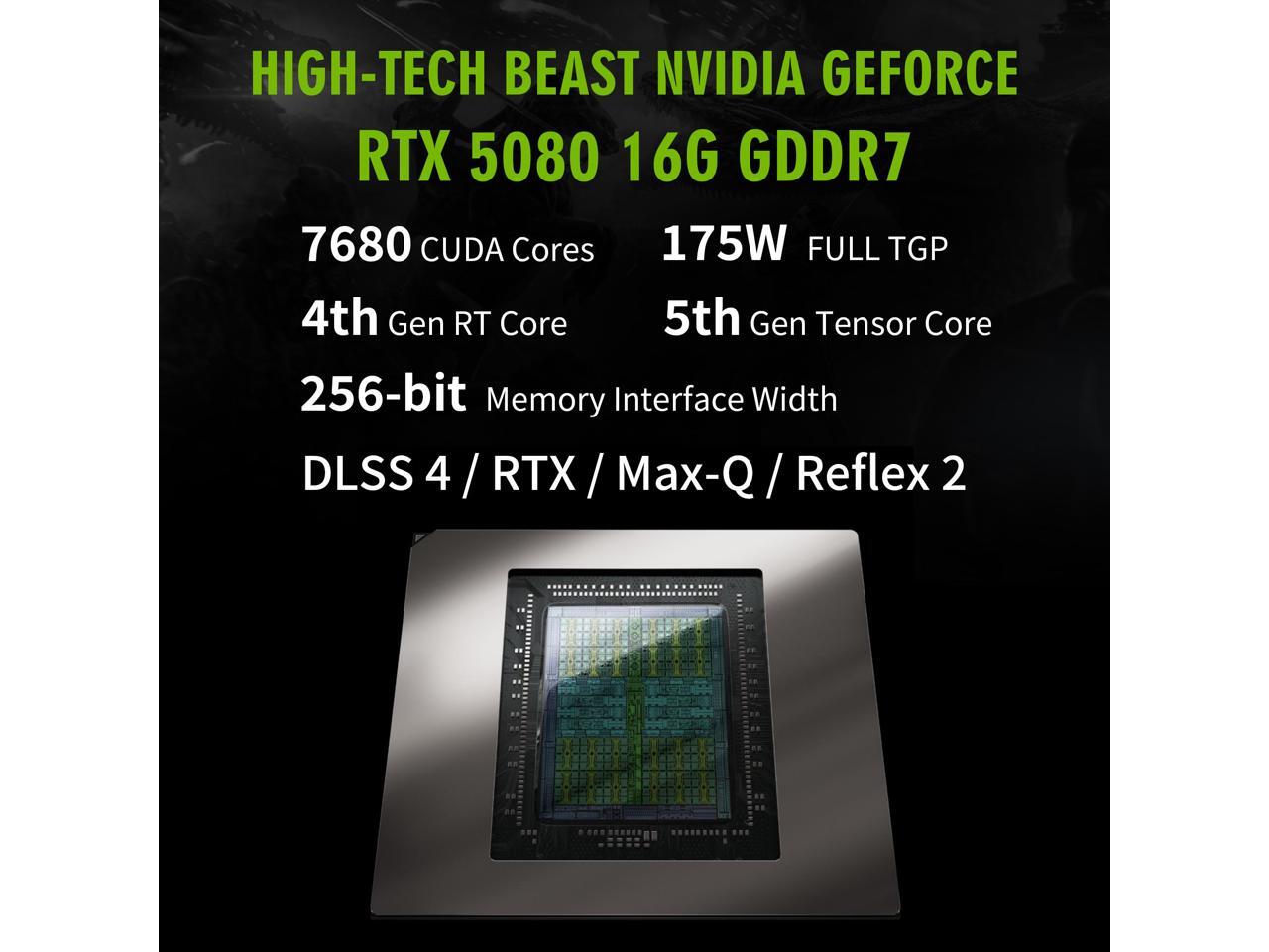 [Nvidia Geforce RTX 5080: applying DLSS 4, RTX, Max-Q, Reflex 2, with Hasee Direct GPU Tech and 16G GDDR7 video memory and has 175W MGP. Supreme Speed. Superior Visuals. Powered by AI bring game-changing capabilities to gamers and creators.