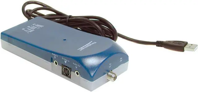 | Specifications | Live TV from 125-channel cable ready TV tuner or from external audio/video source, on your PC or laptop screen. TV-in-a-window (any size) up to full screen. Channel surf 16 channels at a time. Includes SoftPVR for making MPEG movies. Easy installation. Plugs directly into the USB port (1.1 or 2.0) on your PC or Laptop. No additional power supply required. Note: video performance when using USB 1.1 or 2.0 is the same. Capture high quality still video image capture in BMP, TIFF, TGA and JPEG formats, from live TV or any external video source. Also supports video movie capture in Microsoft AVI file format, from TV or any video source. Videoconference with Microsoft NetMeeting by adding a video camera. Microsoft Windows XP/Me/2000/98SE compatible. |