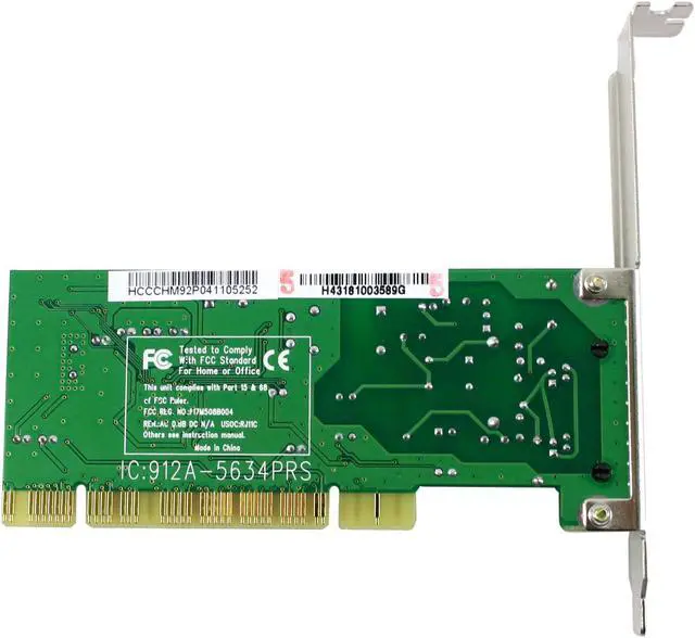 | Standards | ITU-T V.92 (down-stream up to 56,000 bps), V.90, V.34, V.32, V. 34bis, V.32bis, V.32, V.22bis, V.21, Bell 212A and Bell 103 Error Correction Protocol: V.42 LAPM/MNP 2-4 Fax Compatibility: EIA 578 Class 1 and Class 2 ITU V.17, V.29, V.27ter and V.21 channel 2 |