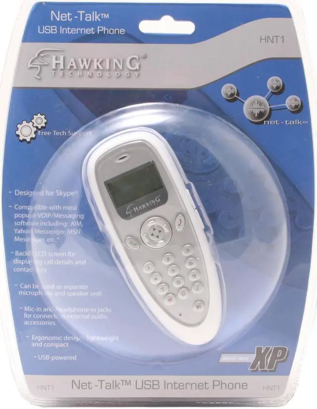 | Features | Designed for Skype - Control Skype call functions from the handset! Compatible with most VoIP/Messaging software: Skype; Yahoo Messenger; Microsoft MSN Messenger; AOL Instant Messenger; Google Talk; More... Backlit LCD Display Volume, Mute buttons Echo-cancellation Auxiliary mic & headset input jacks USB powered Lightweight, sleek and compact design |